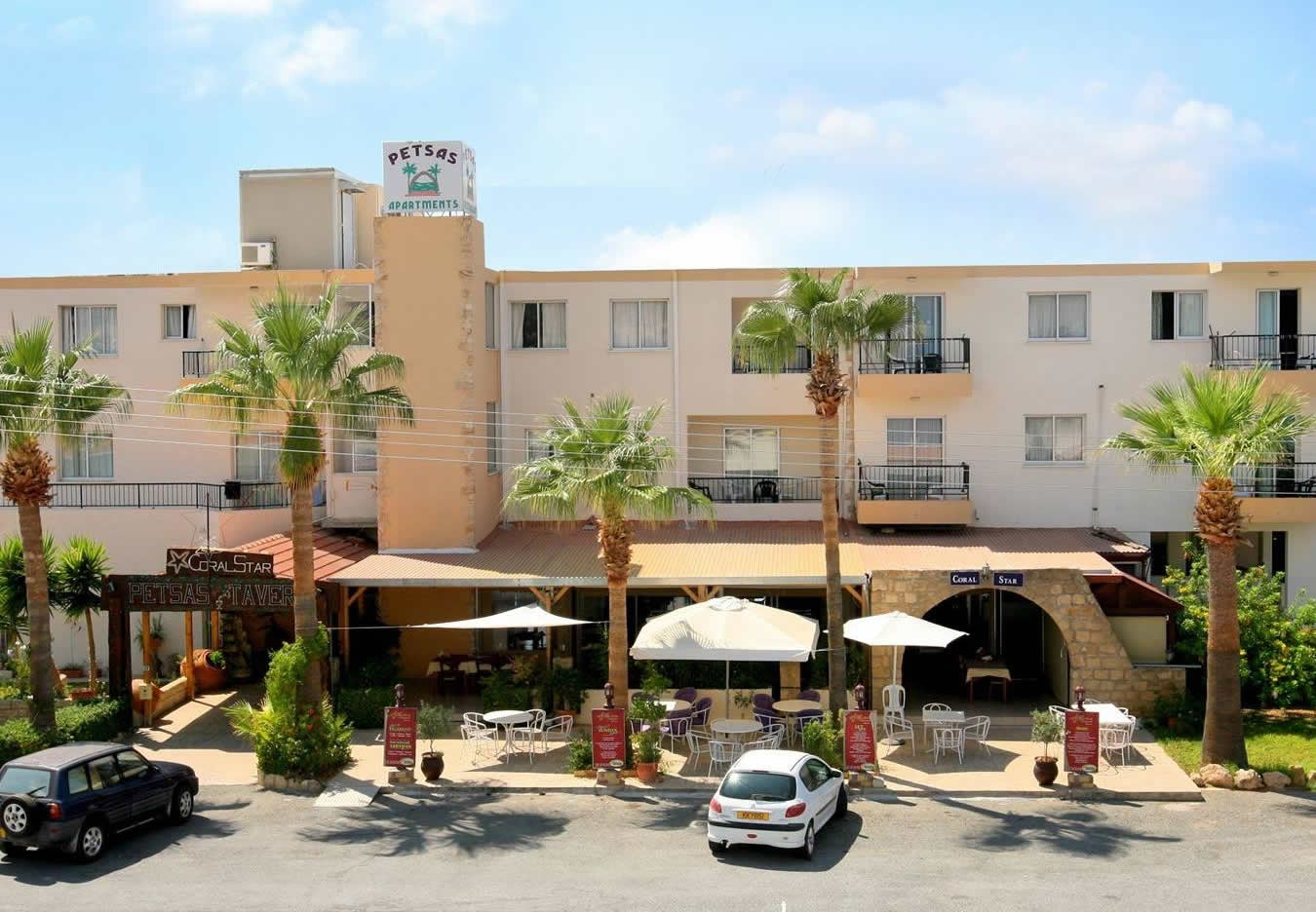 Petsas Apartments are complimented by Coral Star Restaurant with a beautiful traditional and international menu. They are experts when it comes to hosting your special event with function rooms catering for different capacity. Whether its the intimacy of a wedding reception, a christening, birthday party or other event, Petsas will ensure your function meets your requirements and to the highest standards. They are also just a 5 minute walk from the perfect Coral Bay Beach and about 25 minutes from Paphos Airport.